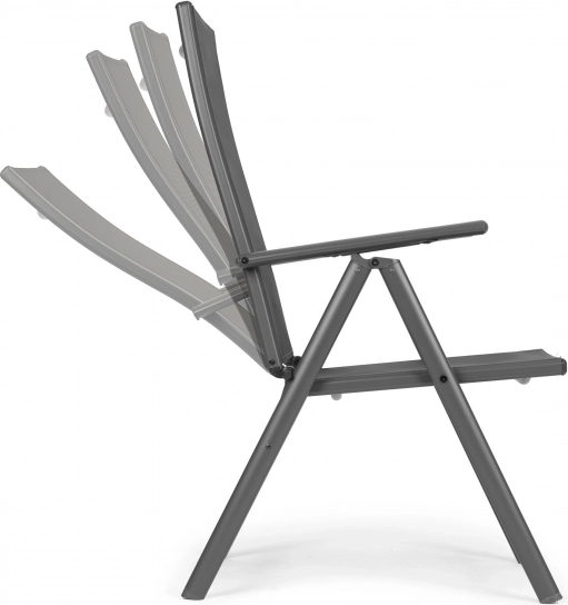 Nyd afslapning udendørs, når du vil. Disse sammenklappelige stole med 7-trins justerbart ryglæn lader dig vælge den perfekte position – fra oprejst siddestilling ved bordet til behagelig afslapning med en bog. Den robuste, pulverlakerede stålramme sikrer stabilitet og lang levetid, mens textilene tilpasser sig kroppen og ventilerer fremragende.