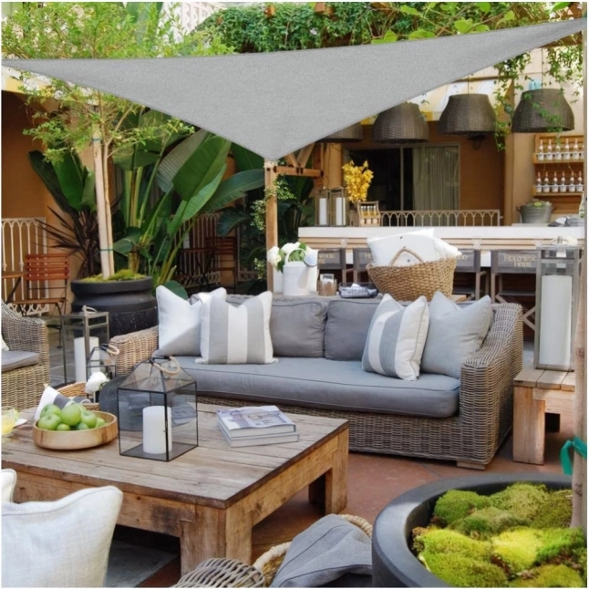Sejlet passer til terrasser, haver, ved pools og på farten. Af flere trekanter kan man kombinere og skabe omfattende overdækning med en attraktiv arkitektonisk effekt. I pakken er der 3 holdbare reb (5 m) til hurtig fastgørelse og korrekt opspænding.
