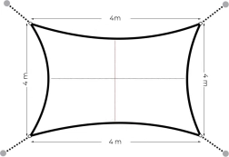 Sejlet kan kombineres med flere for at dække større områder, f.eks. hele terrassen. For korrekt vandafledning anbefaler vi en hældning på ca. 20° samt grundig diagonal opspænding, hvilket forhindrer dannelse af vandlommer.