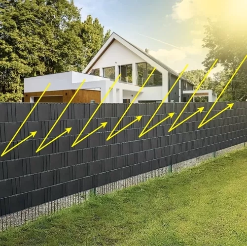 Vi præsenterer vores PREMIUM hegnsstrimmel, som er den ideelle løsning for dig, der søger produkter af højeste kvalitet til haven. Vores strimmel udmærker sig ikke kun ved holdbarhed og styrke, men også ved elegant design og sans for detaljer, hvilket gør den til et perfekt valg for krævende kunder. Leder du efter en afdækningsstrimmel, der beskytter mod nysgerrige naboer, skærmer mod vind og støj, samtidig med at den ser elegant ud, er vejrbestandig og let at montere? Hvis ja, er du kommet til det rette sted. Strimlen kan monteres på panelhegn; altan- og terrassegelændere; skraldeskure eller hegn omkring grunde.