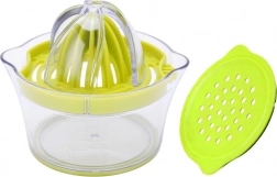 Denne kompakte citruspresser kombinerer en gennemsigtig beholder med måleskala og en effektiv presse med riller for maksimal juiceudbytte. Det medfølgende si-filter opfanger pålideligt kerner og frugtkød, så du får ren, frisk juice klar til servering i drikke, cocktails eller opskrifter.