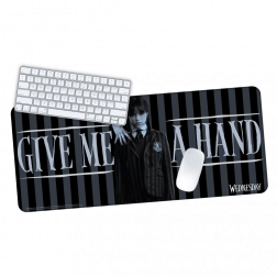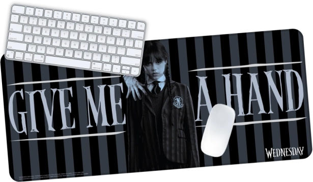 Opdag gaming musemåtten Wednesday - Giv mig en hånd, som ikke blot skiller sig ud med sit unikke design, men også med høj materialekvalitet. Denne måtte er lavet af førsteklasses polyester med mikrofiberoverflade, hvilket muliggør glat og præcis musbevægelse. Den skridsikre gummibund sikrer, at måtten forbliver stabil på sin plads selv under intensiv brug.