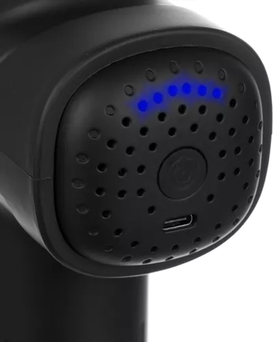 - 6 TRIN AF MASSAGEINTENSITET - Den vibrerende pistol har 6 intensitetsniveauer! Det er et stort spænd, der muliggør individuel hastighedstilpasning til de muskler, der skal behandles. Intensiteten kan aflæses på LED-driften og ændres via en følsom knap. Et let tryk er nok – du behøver ikke trykke hårdt for at skifte tilstand. .