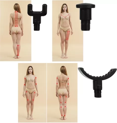 - 8 UDSKIFTELIGE HOVEDER UDSKIFTELIGE MASSAGE - hver muskelgruppe kræver de rette impulser, og med 8 forskellige hoveder kan du arbejde på mange muskler, selv de svært tilgængelige. Sættet indeholder hoveder som rundt, fladt, kugle og gaffel – en detaljeret beskrivelse af anvendelse findes nedenfor. Pistolen er fremstillet af materialer af højeste kvalitet, ligger perfekt i hånden, og grebsområdet er dækket af en skridsikker struktur, så den ikke glider under behandlingen ud af hånden.