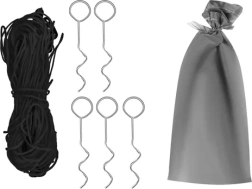 Takket være en vægt på kun 0,89 kg og det medfølgende etui med håndtag er det nemt at bære og opbevare. I sættet medfølger også barduner og pløkker til forankring. Teltet tilbyder god plads til afslapning samt opbevaring af tasker, legetøj og tøj, som forbliver tørt og uden sand.