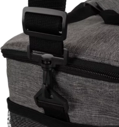 Gennemtænkte detaljer som to-vejs lynlås, behagelige sammenkoblede bærehanke med velcro og skulderrem med regulering gør tasken til en praktisk makker i hverdagen. De to genanvendelige køleelementer i sættet forlænger køletiden på farten, til picnic og på stranden.