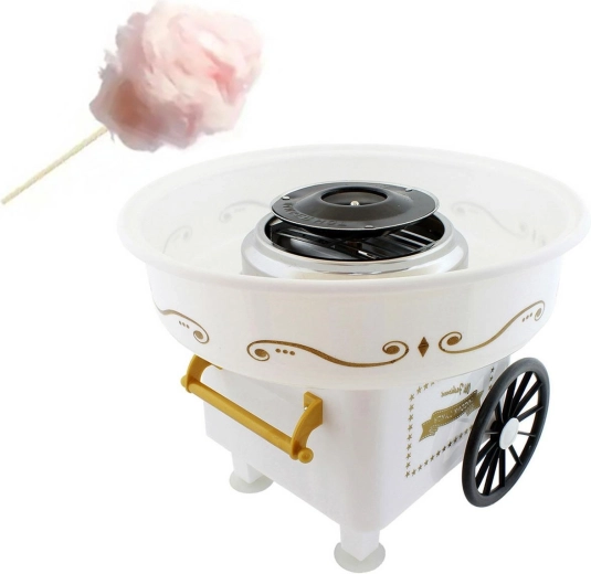 Helt ny, høj kvalitet maskine til at lave vidunderligt luftig, sød og slet ikke fed candyfloss. Kendt af alle børn – både små og store, især fra enhver fest og gåtur i parken! Candyfloss minder alle om lykkelige stunder fra barndommen og giver bestemt vores børn dem igen. Nu kan du lave denne søde dessert derhjemme eller til børnefødselsdagen. Vi forsikrer dig om, at ikke kun børnene vil blive glade :)