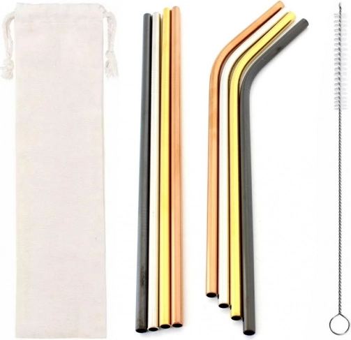 Sæt med elegante stålsugerør til genbrug. De pifter enhver fest op, selv den mest kedelige. Fremstillet af rustfrit stål for mange års problemfri brug. En ny, miljøvenlig løsning sammenlignet med klassiske plastiksugerør!