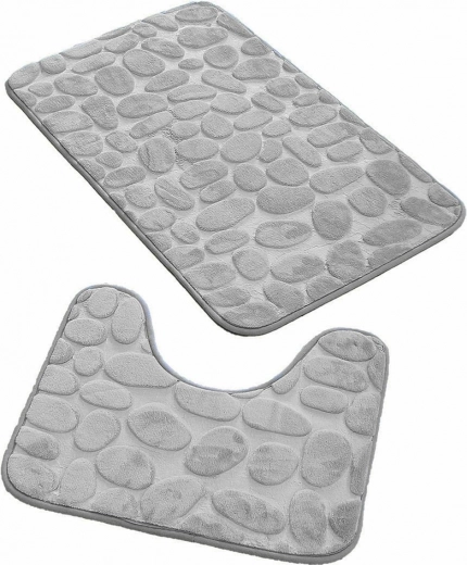 Et perfekt badesæt med en flot struktur. Sættet består af to måtter – en klassisk bademåtte og en måtte til toilettet. Er du træt af at tørre fodspor af den våde badeværelsesgulv? Invester i en måtte, der effektivt absorberer fugt, holder badeværelsesgulvet tørt og sparer dig for ekstra rengøring. Takket være det anvendte materiale er måtterne bløde, elastiske og behagelige at røre ved. De har også den egenskab, at de husker formen på vores fødder! Du vil heller ikke fryse om fødderne på badeværelsesfliserne. En særlig belægning på undersiden sikrer, at de ikke glider.