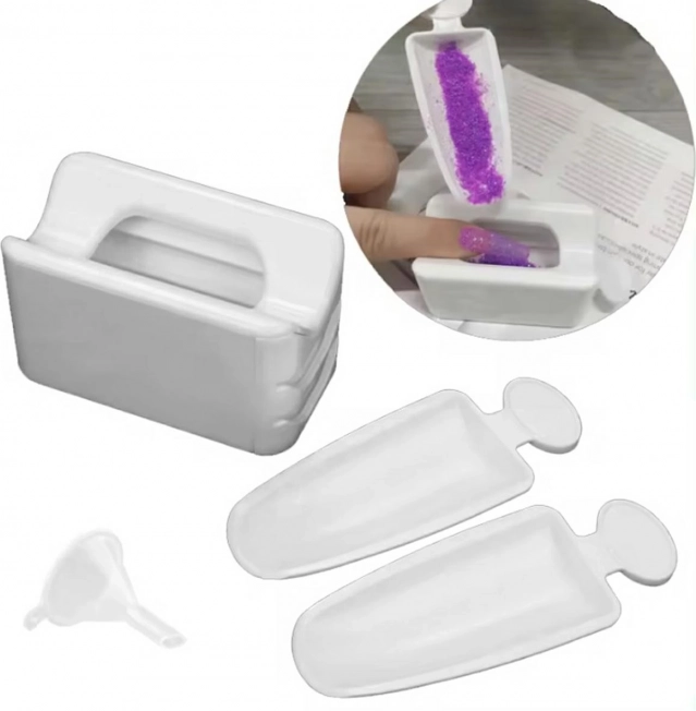 Beholder til dekorationer og glimmer er designet til at lette arbejdet med negledesign i skønhedssaloner. Takket være dens design og udstyr holder du dit arbejdsområde rent og organiseret.