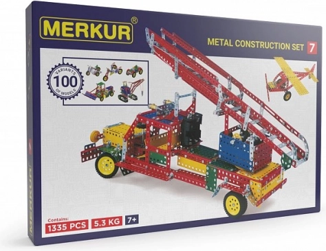 MERKUR 7 er et robust, klassisk metalbyggesæt, der tilbyder et universelt udvalg af dele suppleret med specialkomponenter til at bygge en stor brandbil, store kraner og mange andre funktionelle modeller. Takket være den overskuelige instruktionsbog kan du trin for trin bygge dusinvis af attraktive konstruktioner.