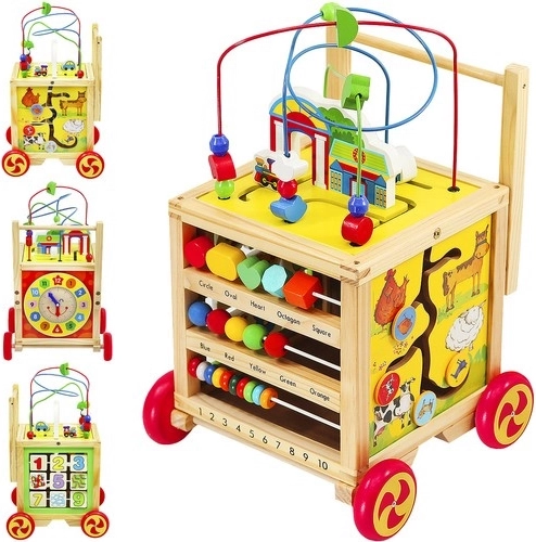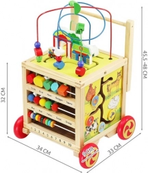 Udover vognen er produktet udstyret med en uddannelses terning, der tilbyder forskellige aktiviteter for udvikling af færdigheder. Hver side af terningen indeholder et spil – fra en bogstavbane til en farverig labyrint.
