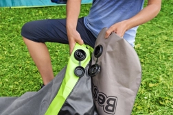 Oppustningssystemet AirCinch gør oppustning hurtig og nem ved hjælp af en specialdesignet pumpe pose. Madrassen er let at folde og opbevare i bæreposen, hvilket gør det nemt at transportere og opbevare.