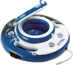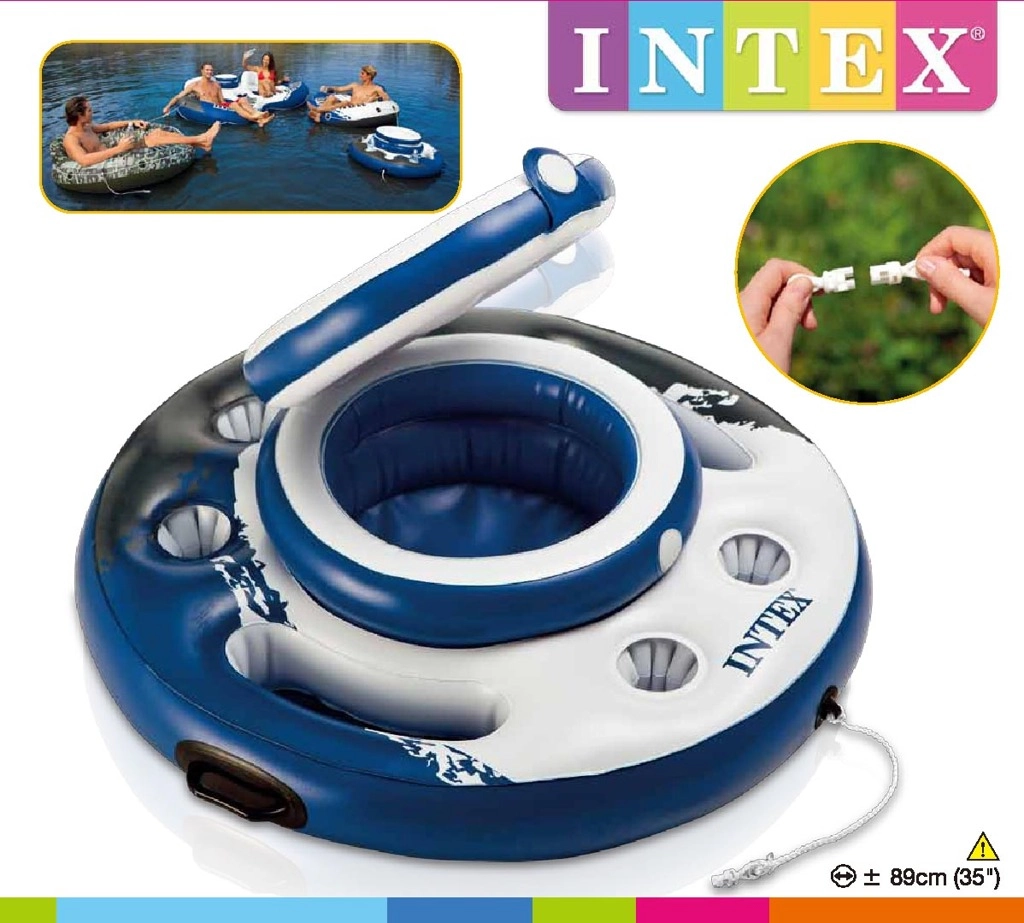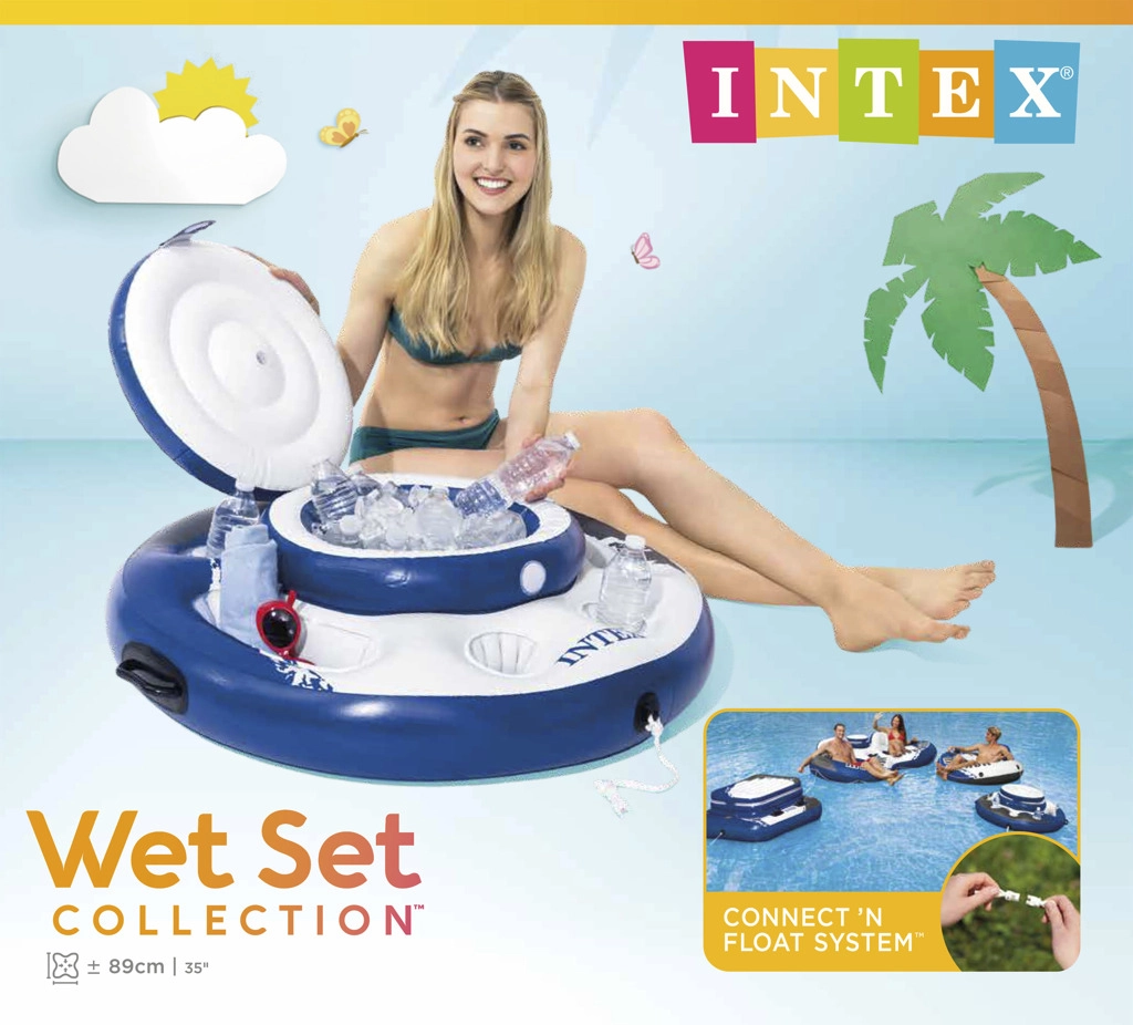 Den oppustelige kølebar er det ideelle tilbehør til poolen, haven og stranden. Med en stor diameter på 89 cm rummer den op til 24 dåser, og med is holder den alt behageligt afkølet. Praktiske håndtag gør det nemt at håndtere den både på land og i vand, mens den fler-kamrede konstruktion sikrer stabilitet og sikkerhed.