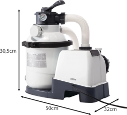 INTEX sandfilteret er det ideelle valg til mellemstore og store fritstående pools. Det høje flow på 5700 l/t og Hydro Aeration-systemet forbedrer markant cirkulation og iltning af vandet, hvilket giver større klarhed og komfort ved badning. Den korrosionsbestandige tankkonstruktion, det tydelige manometer og den drejelige ringflange gør installation og vedligeholdelse nemmere.