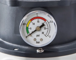 5-vejs ventil, overskueligt manometer og indbygget timer til automatiske cyklusser gør driften nem og energibesparende.