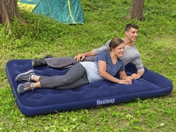Leder du efter en alsidig løsning til gæster, camping eller weekendture? Den oppustelige seng BESTWAY Air Mattress Full kombinerer komfort, stabilitet og nem betjening i ét. Det holdbare materiale med en behageligt blød, flocket overflade holder lagenet på plads og giver komfort hele natten. Den integrerede pude støtter hoved og nakke uden behov for ekstra udstyr.