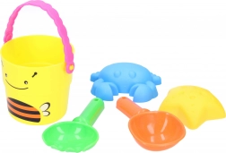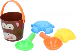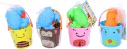 Sættet indeholder en spand med glade dyremotiver, perfekt til at bære sand eller vand.