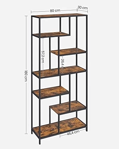 Passer til stue, soveværelse, kontor og entré. Seks hylder rummer nemt bøger, planter, rammer, dekorationer og bokse til småting. Takket være de kompakte mål 80 × 30 × 180 cm passer den også i mindre rum.