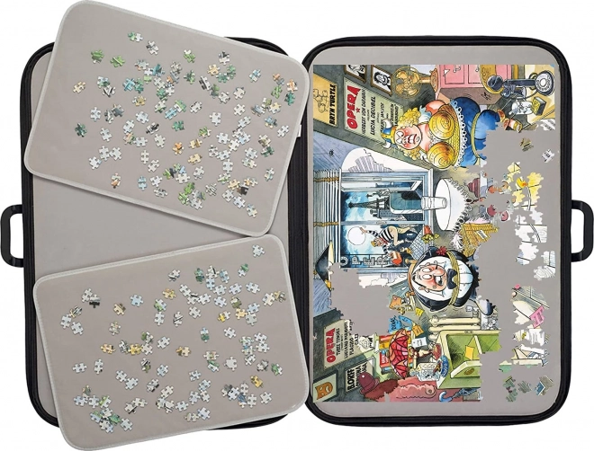 Den omkransende lynlås og den solide konstruktion beskytter dit puslespil mod at skride, støv og skader – så du altid kan fortsætte, hvor du slap.