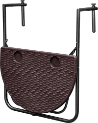 Takket være 3-trins højdejustering kan du tilpasse bordet til dine behov. Når du har brug for mere plads, kan du klappe det ned på få sekunder. Installationen er hurtig – hæng blot på gelænderet og stram klemmerne. De justerbare beslag passer til gelændere med bredde 6–14,5 cm.