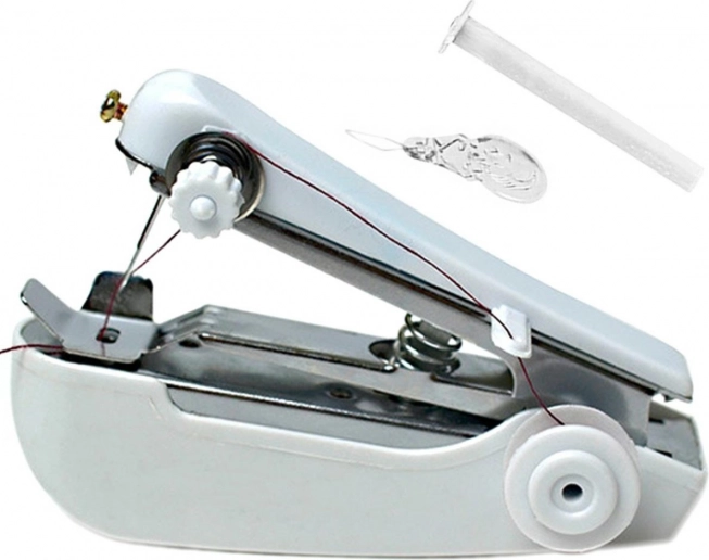 Den håndbetjente mini-symaskine er et praktisk tilbehør til enhver husholdning. Denne lette og behagelige symaskine er lavet af holdbar plast og er ideel til små reparationer.