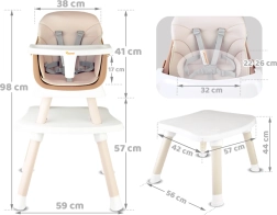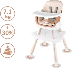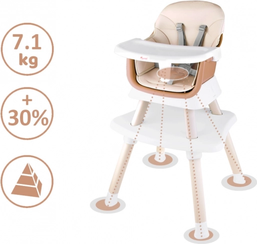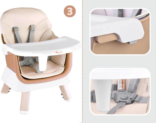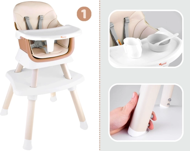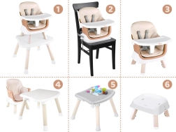 Denne multifunktionelle 6-i-1 stol er ideel til de første smagsprøver og selvstændige måltider. Den tilbyder højt og lavt sæde, mulighed for at skubbe den til bordet, et separat lille bord til leg og endda en specialplade til byggeklodser. Det moderne design passer ind i enhver indretning, og den nemme vedligeholdelse sparer tid.