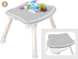 - 6 funktioner i én: høj stol, sædeforhøjer til spisebordsstol, lav stol med bakke, stol med bord, bord med klodseplade, lav skammel