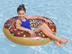 Det realistiske look af en chokoladedonut med farvet krymmel lyser ethvert bassin op og giver din sommer stil.