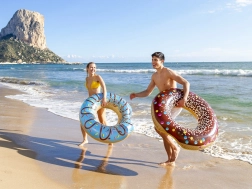 Denne stilfulde ring i form af en bidt donut imponerer med klare farver og et legende udtryk. Med en diameter på 107 cm er den velegnet til voksne og større børn og giver god støtte ved afslapning på vandoverfladen.