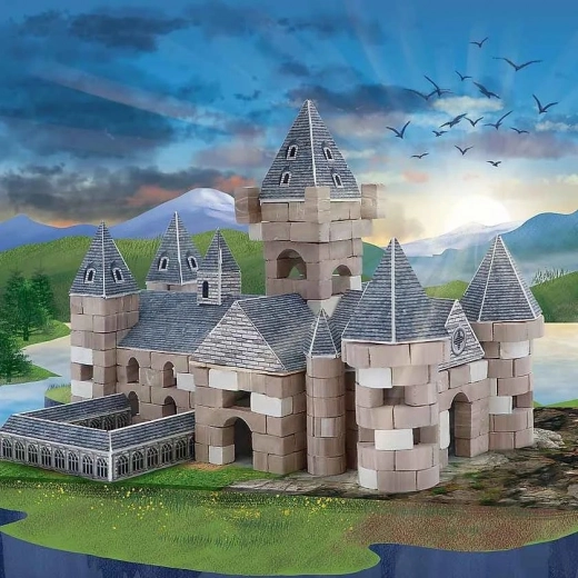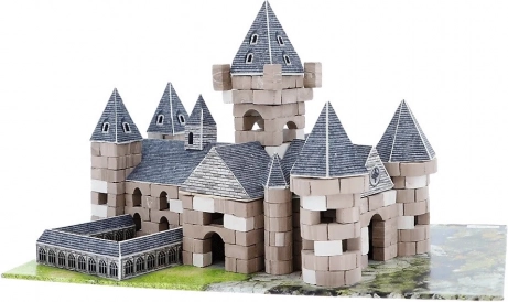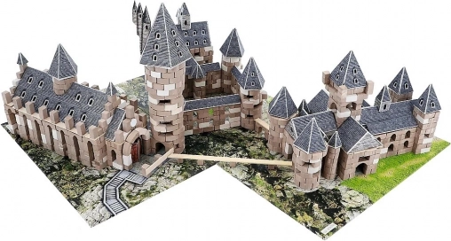 Autentisk oplevelse: læg rigtige små lersten, skær og lim træplanker, og skab en detaljeret del af Hogwarts med tårne og gallerier.