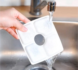 Forfilter-svamp, ionbytterharpiks og aktivt kul eliminerer lugte og urenheder. Udskiftelige filtre holder vandet friskt i længden.