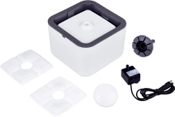 Vælg mellem blidt springvand, vandstråle som fra en hane eller et roligt reservoir. Fremmer hyppigere indtag og bedre iltning af vandet.