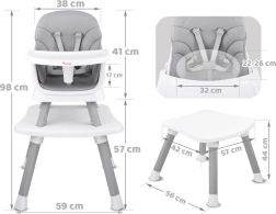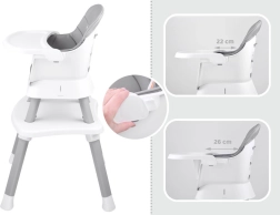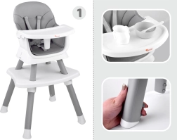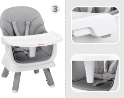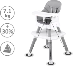 Denne multifunktionelle 6-i-1 stol er ideel til de første smagsprøver og daglige måltider. Takket være det gennemtænkte design kan den nemt tilpasses barnets vækst og forskellige situationer – fra spisning ved bordet til leg og kreativitet. Den aftagelige bakke kan hurtigt skylles under rindende vand eller vaskes i opvaskemaskinen, og betrækket er åndbart og let at holde rent.