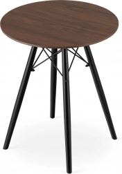 Dette sofabord bringer en kombination af tidløst design og fremragende ergonomi til din stue eller spisestue. Bordpladen har en diameter på 60 cm og er lavet af lakeret MDF, hvilket sikrer ridsemodstand selv ved intensiv brug.