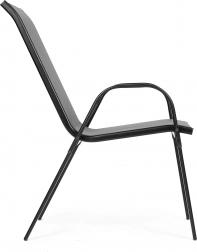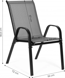 Tekstilnet, der udgør sædet og ryglænet, er vandafvisende og hurtigtørrende, så det nemt modstår regn og morgenens dugdråber. Skridfri fødder beskytter gulvfladen mod ridser og sikrer stabilitet under sidning. Muligheden for stabling spare plads under opbevaring når de ikke er i brug.