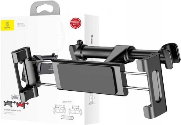BASEUS-holderen er designet til komfortabel visning af indhold fra bagsæderne. Den kombinerer holdbare materialer – aluminium, polycarbonat (PC) og polyuretan (TPU) – samt et specialgreb fra BASEUS, der beskytter enheden og minimerer vibrationer. Værktøjsfri installation på nakkestøttens stænger med en afstand på 14–18 cm er hurtig og sikker.