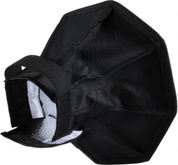 Takket være universel fastgørelse med velcro og elastisk rem passer den nemt på de fleste systemblitz. Hexa/okto-formen sikrer jævn lysfordeling uden markante hotspots og giver attraktive catchlights i øjnene.