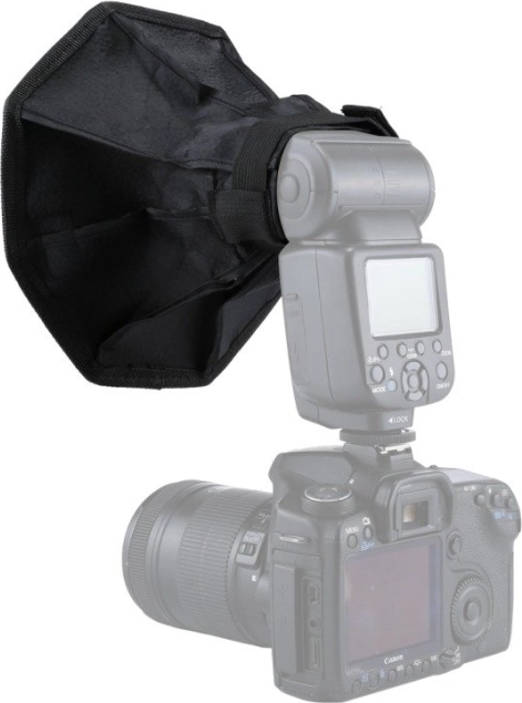 - Universel kompatibilitet – passer til de fleste eksterne blitz takket være elastisk rem og velcro.