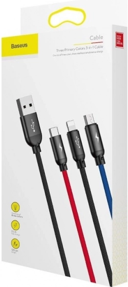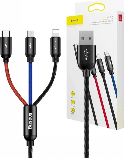Baseus kabel 3-i-1 USB-C / Lightning / Micro USB, 3,5 A, 0,3 m, sort