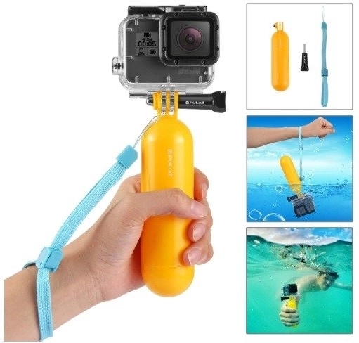 Det flydende håndtag i en iøjnefaldende farve holder kameraet over vandoverfladen og forbedrer grebet under svømning, snorkling eller paddling. Med remmen kan du sikre det trygt om håndleddet.