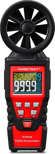 Kompakt digitalt anemometer HABOTEST til præcis måling af luftstrøm i hjemmet, HVAC og industrien. Takket være den 8‑bladede rotor og et bredt udvalg af enheder (m/s, km/t, ft/s, knob, ft/min, mph) får du fleksibilitet i enhver situation. Farve‑HD‑display, funktionerne MAX/MIN/AVG, Data Hold og automatisk slukning sikrer bekvem og effektiv brug. Strøm via 3× AAA batterier.