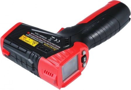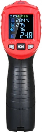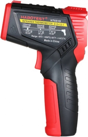 Det infrarøde termometer Habotest HT651D sikrer en enestående målenøjagtighed. Med det kan du ikke kun måle temperaturen på et specifikt punkt, men også få omgivelsestemperatur, dugpunkt og relativ luftfugtighed. Den farvede skærm gør instrumentet let at betjene, og den medfølgende K-type termoføler giver endnu flere muligheder. Termometeret har også alarmfunktion. Det drives af et 9V 6F22-batteri, som skal købes separat.