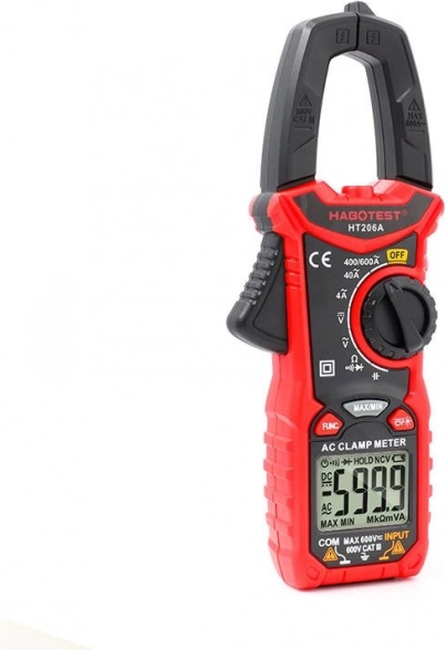 Den kompakte digitale tangmultimeter HABOTEST HT206A tilbyder præcise målinger med en overskuelig bagbelyst LCD-skærm og kæbestørrelse på 26 mm. Den gør det muligt at måle AC-spænding, AC-strøm, modstand, kapacitans, udføre kontinuitetstest og arbejder med True RMS for pålidelige resultater. En praktisk lygte, datahold, MAX/MIN-funktion og automatisk sluk gør den let at bruge i værksted og i felten.