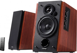 EDIFIER R1700BT er elegante 2.0-højttalere i træ, som kombinerer moderne teknologi med et klassisk design. Indbyggede DSP/DRC holder lyden ren selv ved højere lydstyrker, mens den forreste bassrefleks giver bassen dybde og energi. Med Bluetooth parrer du telefon eller tablet på et øjeblik.