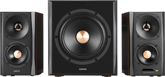 Højttaleren Edifier S350DB leverer en komplet lydoplevelse, der trækker dig ind i musikkens, filmens og spillenes verden med 150 W samlet effekt. Den udmærker sig med sin subwoofer for kraftig bas og fuldt funktionsdygtige satellithøjttalere.