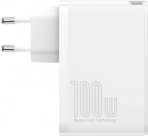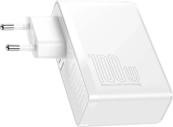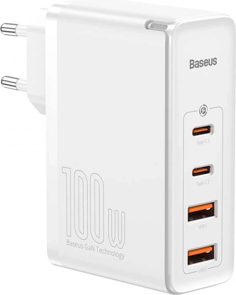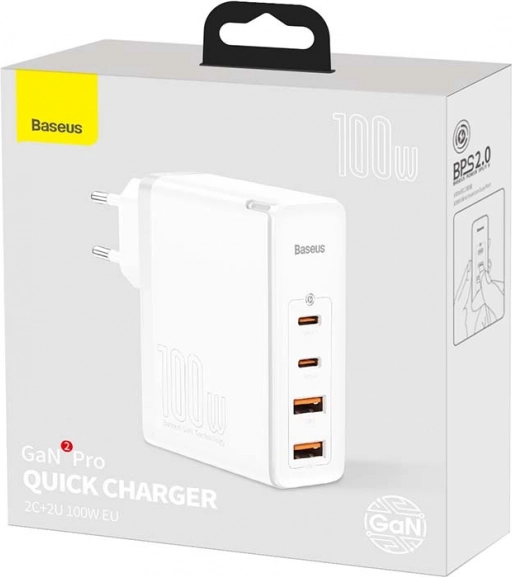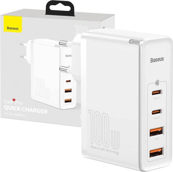 Baseus GaN2 Pro Quick 100W rejseoplader, 2× USB-C + 2× USB, EU – Hvid
