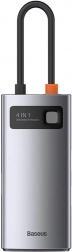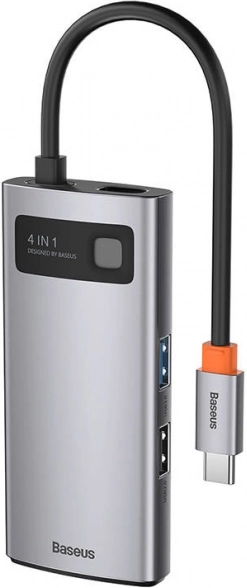 Kompakt USB-C hub 4-i-1 BASEUS Metal Gleam udvider din bærbare eller telefon med HDMI 4K@30 Hz, USB 3.0 (5 Gb/s), USB 2.0 og USB-C Power Delivery op til 100 W. Stilfuldt aluminiumschassis, Plug & Play uden drivere og bred kompatibilitet med Windows, macOS, ChromeOS og Linux – ideel til arbejde, studier og underholdning.