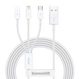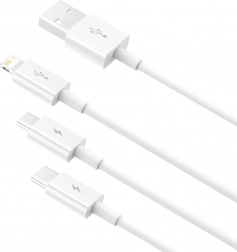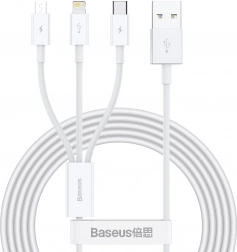 BASEUS Superior 3-i-1-kablet er en smart løsning til at oplade flere enheder på én gang. Ét kabel tilbyder de tre mest anvendte stik – Lightning til iPhone, USB‑C til moderne smartphones og enheder samt Micro USB til ældre telefoner eller småelektronik. Med strøm op til 3,5 A sikrer det hurtig og stabil opladning.