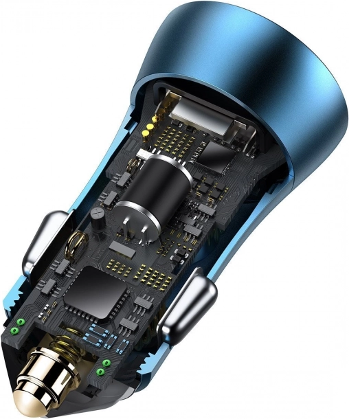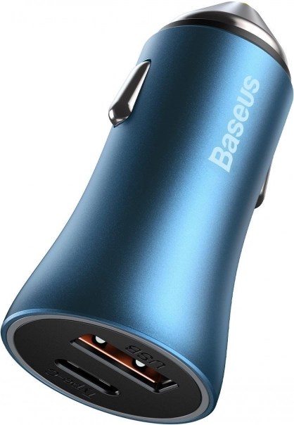 Den kompakte biladapter BASEUS Golden Contactor Pro med en effekt på 40 W oplader hurtigt op til to enheder samtidig via USB‑C og USB-portene. Understøtter PD 20 W, QC 4.0 og SCP for hurtig og sikker opladning. I pakken finder du også et 1 m USB‑C – Lightning-kabel, så du kan tilslutte iPhone eller iPad med det samme. Det metalliske kabinet i elegant blå, LED-indikator samt beskyttelse mod overophedning, overspænding og overopladning sikrer driftssikkerhed i enhver bil.